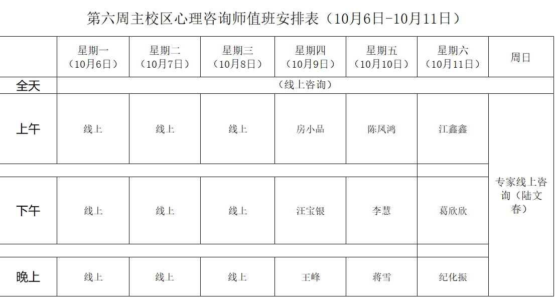下一条:2025年秋季学期心理咨询师值班安排表第五周(主西校区)