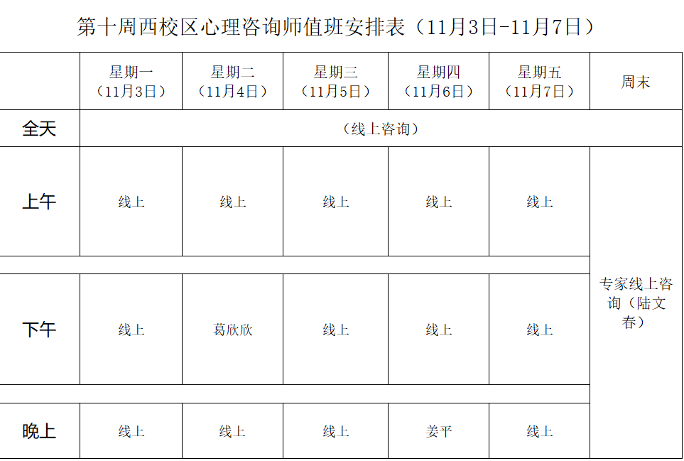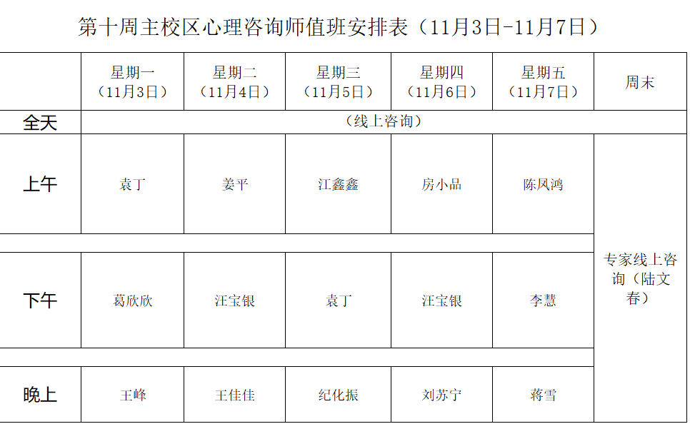 下一条:2025年秋季学期心理咨询师值班安排表第九周(主西校区)