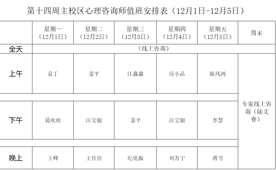 下一条:2025年秋季学期心理咨询师值班安排表第十三周(主西校区)