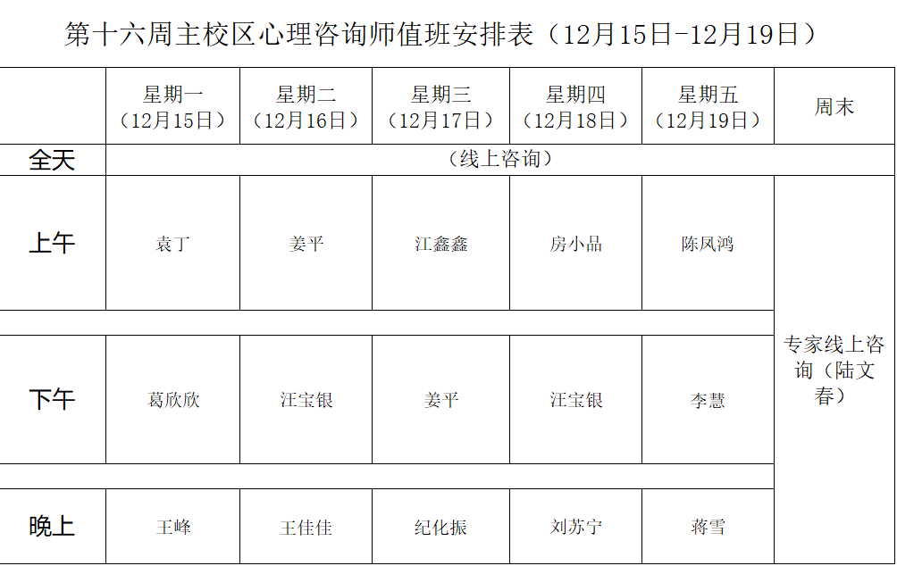 下一条:2025年秋季学期心理咨询师值班安排表第十五周(主西校区)